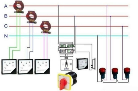 電流互感器是一種特別的變壓器,它的作用是把大電流變成標準小電流,配合檢測外表、計量外表和繼電器等設備作業。這樣可以起到擴展外表檢測規劃,行進電路的穩定性和安全性的作用。電流互感器的電流接線原理圖如下圖所示,電流互感器的一次線圈串聯在一次主電路中,其二次接入的外表和繼電器的線圈也全部是串聯的。